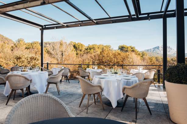 L'Atelier des Lodges - Restaurant bistronomique - Terrasse - Vue Sainte Victoire - Hotel Les Lodges Sainte Victoire